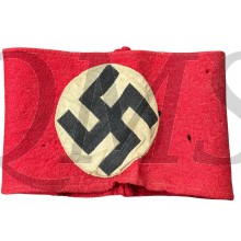 Textbook original NSDAP Nazi party arm band. The armband has been cut in half, and its swastika construction is multipiece rather than printed.