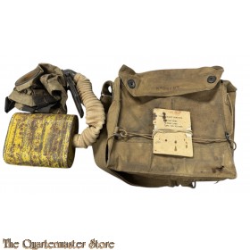 M.17 US Army "nominative" gas mask from the First World War, version in oilcloth, complete with filter, bag with shoulder strap and booklet for instructions and maintenance