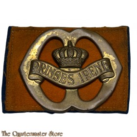 Het dunne embleem wordt gevormd door een banderol met de woorden PRINSES IRENE met daarboven de Koninklijke kroon. Het baretembleem is van goudkleurig metaal en heeft een oranje achtergrond met nassausblauwe bies. oorspronkelijk ingevoerd op 9 november 1946.