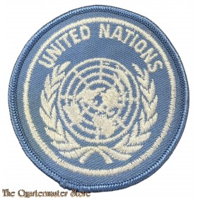 cloth circular (7 cm diameter) light blue cloth badge bearing the emblem of the UN and text 'UNITED NATIONS’ cloth backing