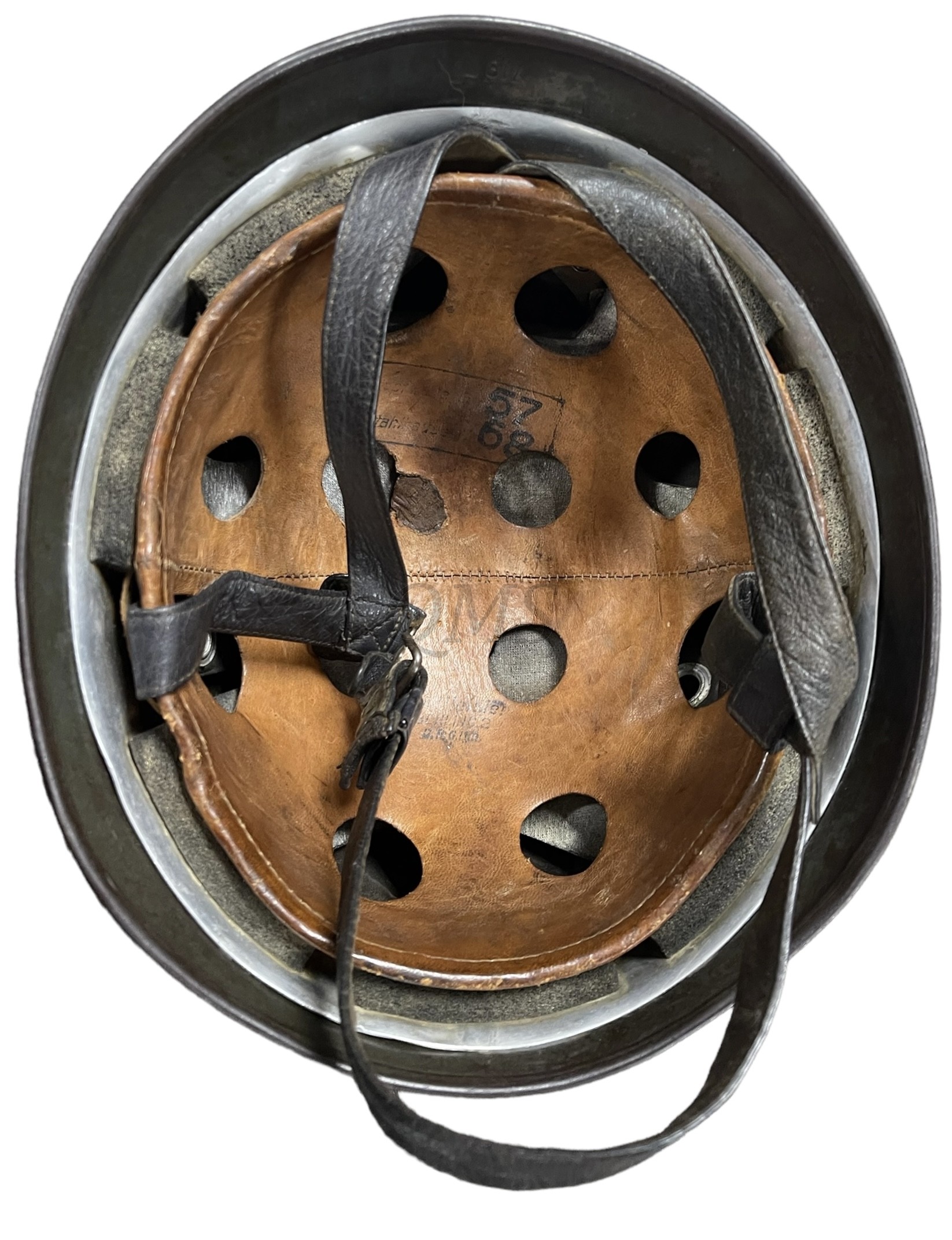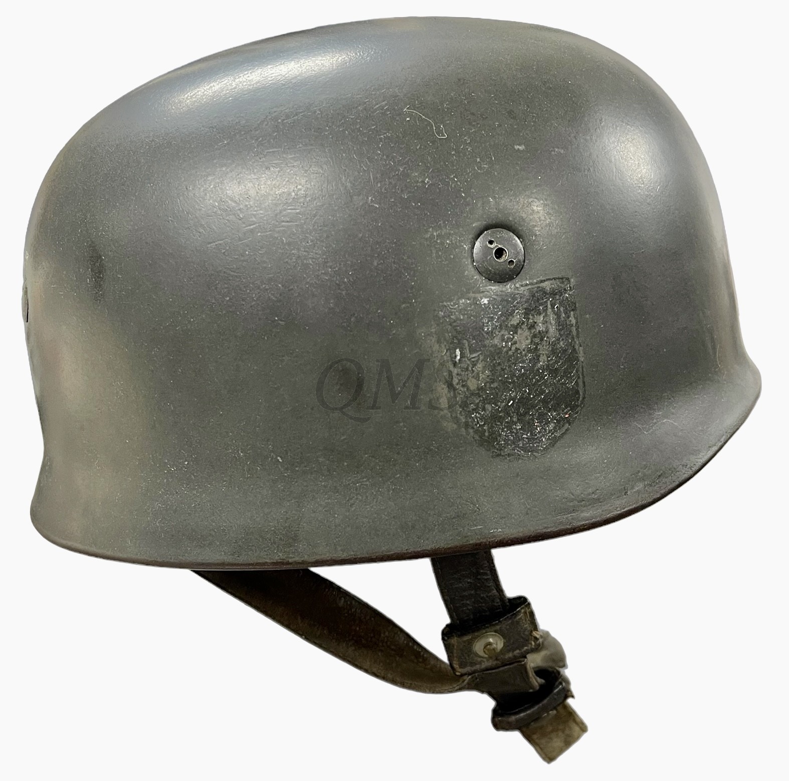 National decal removed, In March 21 1940 the German high command ordered the helmets to be repainted with a rough textured dark field gray matte paint. The order also specified that the red, white, and black national colors decal would need to be removed from existing helmets and the factories were ordered to no longer apply these decals