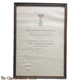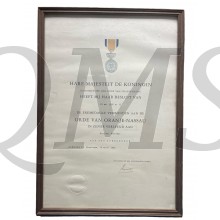 Oorkonde Eremedaille Orde van Oranje Nassau, civiel