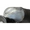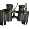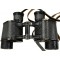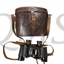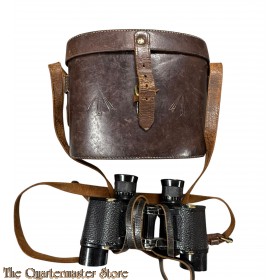 . The lenses are clear, case has broad arrows and leather carrying strap