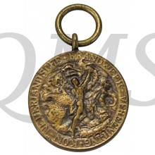 Het onderscheidingsteken toegekend in brons draagt de tekst "voor trouwen BRANDWEERDIENST"