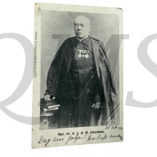 portret van Mgr. Dr. H.J.A.M. Schaepman, een invloedrijke Nederlandse dichter, rooms-katholiek priester, theoloog en politicus. Hij werd geboren op 2 maart 1844 in Tubbergen en overleed op 21 januari 1903 in Rome