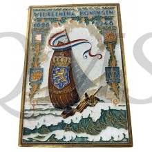 Cloisonné wandtegel vervaardigd door plateelfabriek De Porceleyne Fles te Delft. Koningshuis - Royal Family -Wilhelmina 1898 - 1948. 50 Jarig Regeringsjubileum