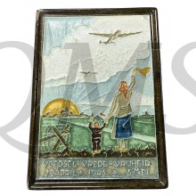 Verzet Voor Vaderland, gemaakt ter herdenking tegen de Duitse bezetting. Een indrukwekkende tegel van 14 x 19,5cm ontworpen door H.J. Tieman. De tegel heeft schade rechts boven .