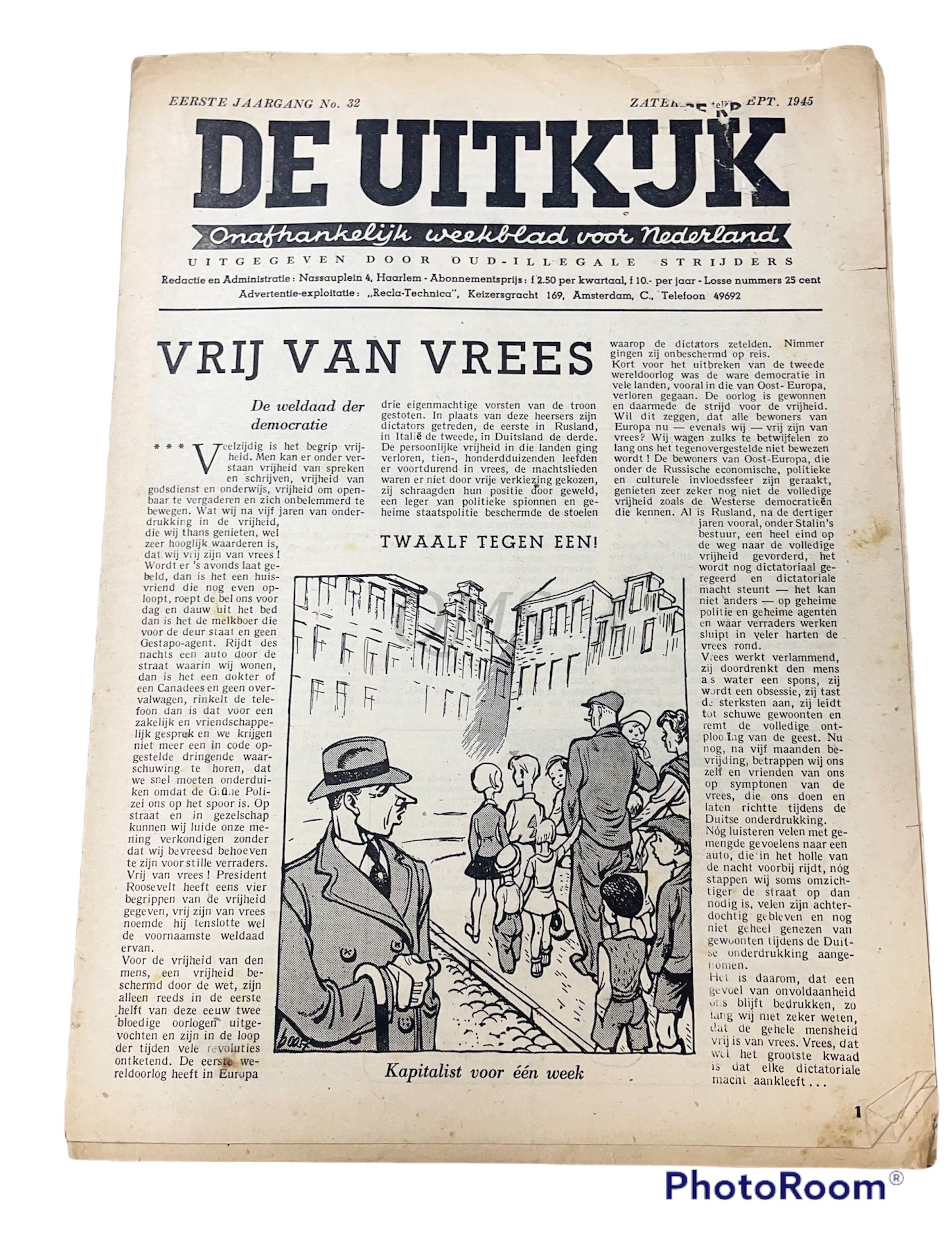 De Uitkijk 1e Jrg No 32, onafhankelijk weekblad voor Nederland sept 1945