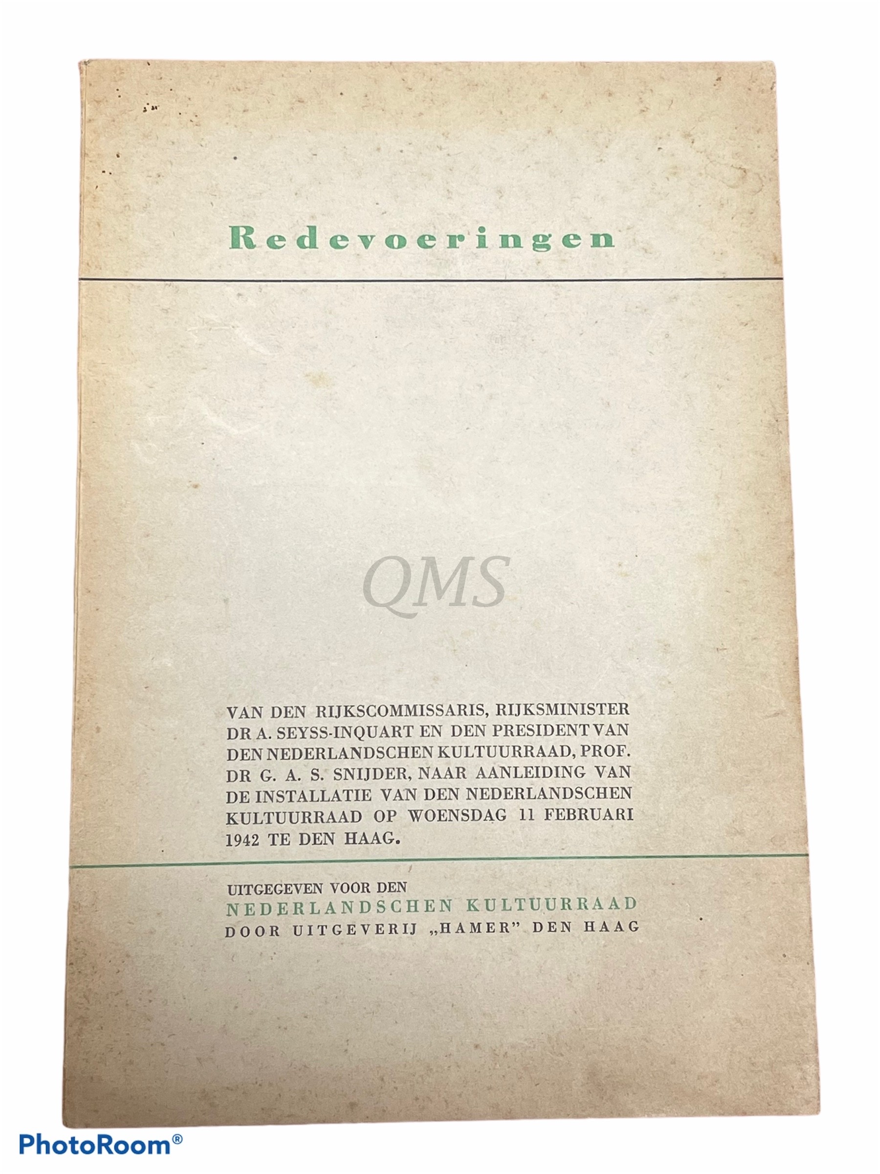 Brochure NSB ; Redevoeringen van den Rijkscommissaris, Rijksminister Dr. A. Seyss-Inquart en den president van den Nederlandschen kultuurraad, Prof.Dr. G.A.S. Snijder