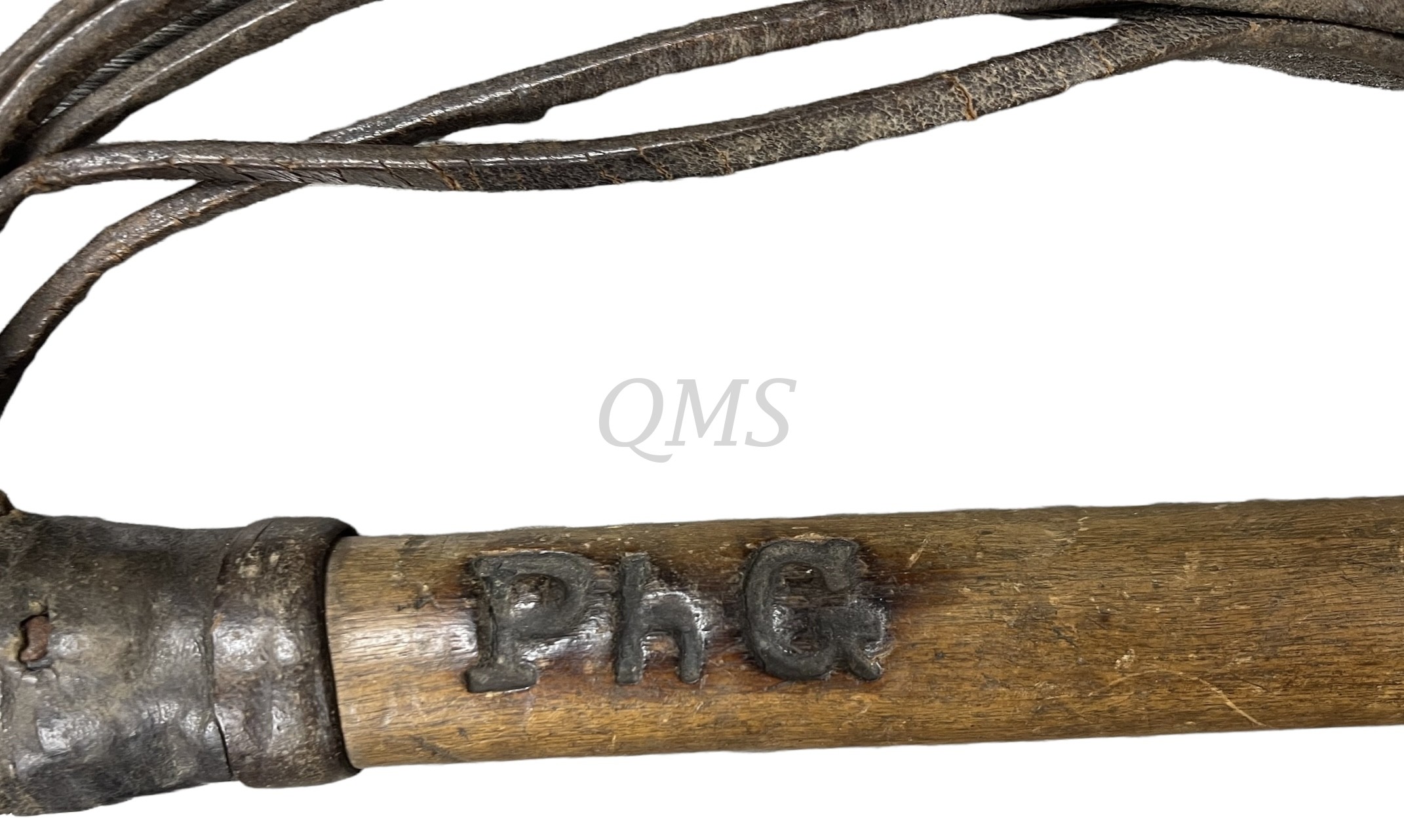 N.O.S. , wooden handle leather straps, houten greep, leren riempjes
