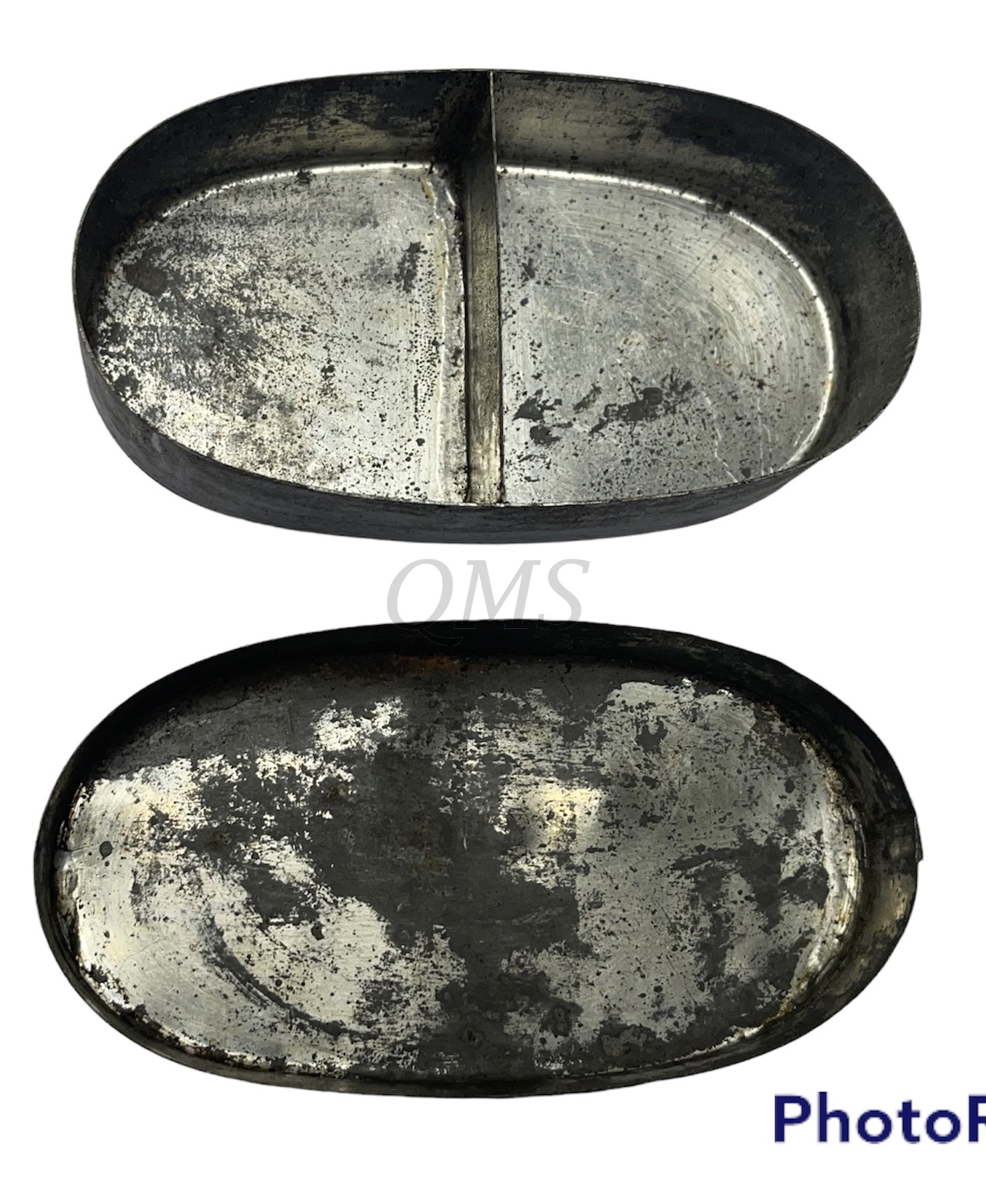 ovaal en verdeeld in twee vakken