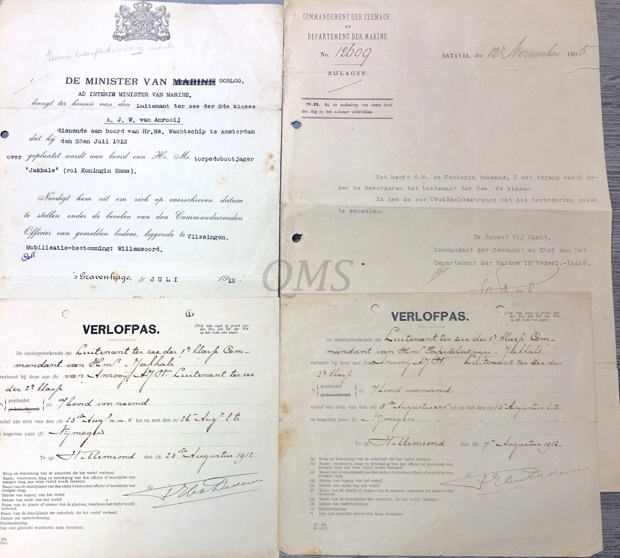 4x Documenten H.M. torpedobootjager "Jakhals" 1905-1918
