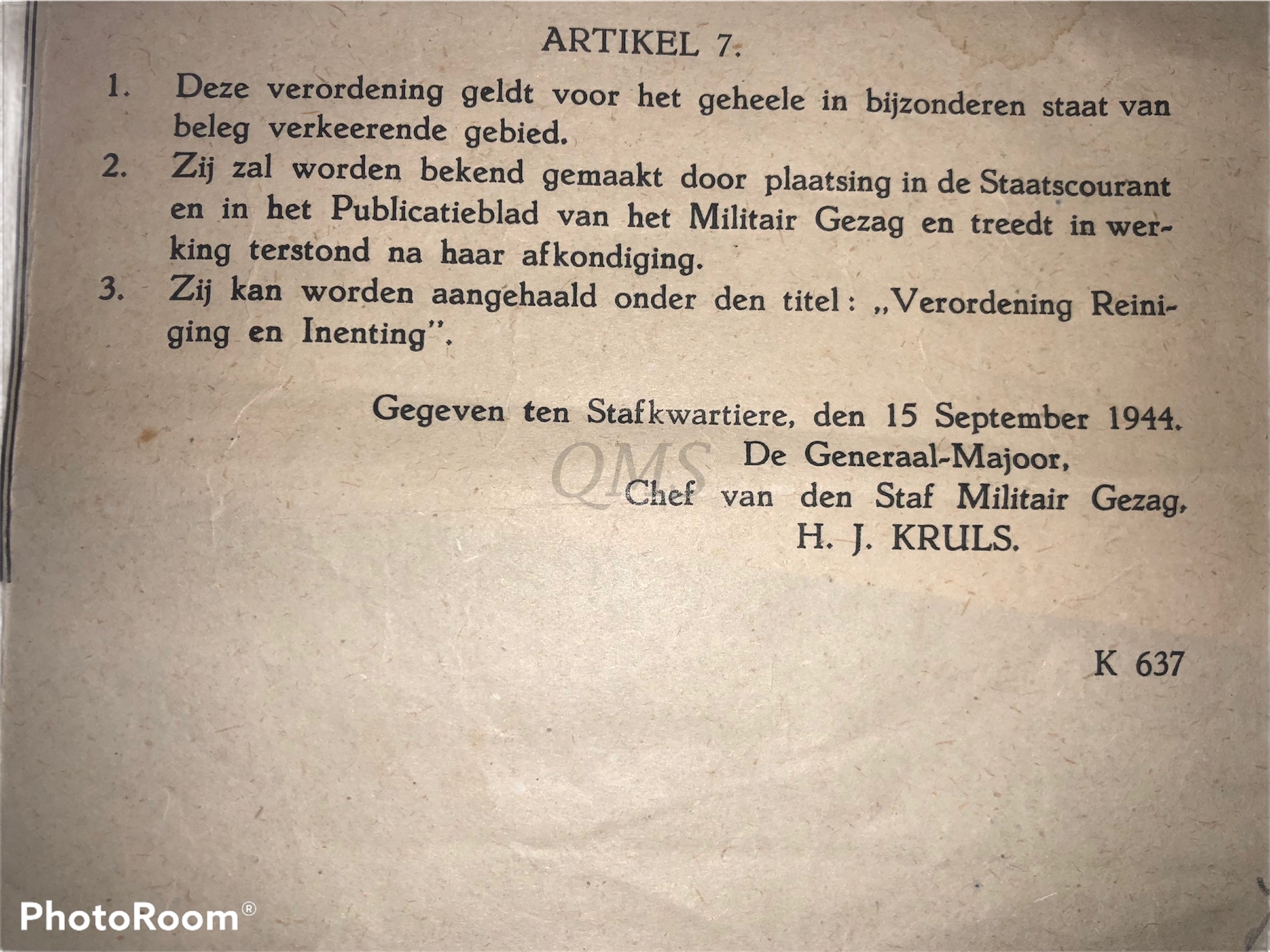 geldt voor bezet gebied, Gen Maj H.J. Kruls K 637