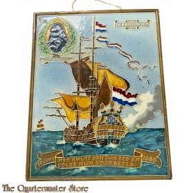 De tegel heeft als opschrift 10 Juni, Men kwijte dan zijn eed en volge mijn voorbeeld, 1666