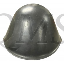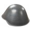 Helmet grey painted steel helmet with a six-tongued leather liner that is attached to a grey plastic adjustable cradle. The front and rear of the liner have cushion pads made of yellow foam. The complicated chinstrap is made of three short straps (right side) that are connected to form a 'Y' and buckled to the liner either side of the wearer's ear. Left side, there are two short straps, connected as above, but with a white metal single-pronged buckle attached.named Thiele