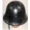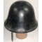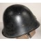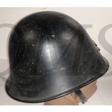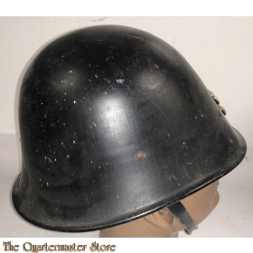 Dutch M27 Combat Helmet (Stalen helm model 27). The stamped sheet steel construction M27 helmet retains almost all of it's black paint. All liner retaining rivets are intact. The interior of the helmet is a felt liner complete with chinstrap