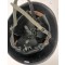 a metal bomb emblem crudely attached to front, All liner retaining rivets are intact. The interior of the helmet is a felt liner complete with chinstrap