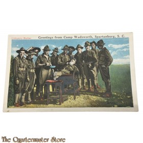 Postcard / Studio Photo US WW1 2 US Soldiers "Packing kit" Greetingsfrom Camp Wadsworth Spartanburg S.C.