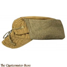 the standard US Army winter cap issued from 1907 through WWI and beyond. This is the early version with cloth ties at the front