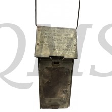 These were favored by soldiers because they folded up and easily fit in there packs. Dated 1906 made of zinc tin; this example has the mica-glass still intact, but does show some cracking and grazing to panels overall good-plus condition.