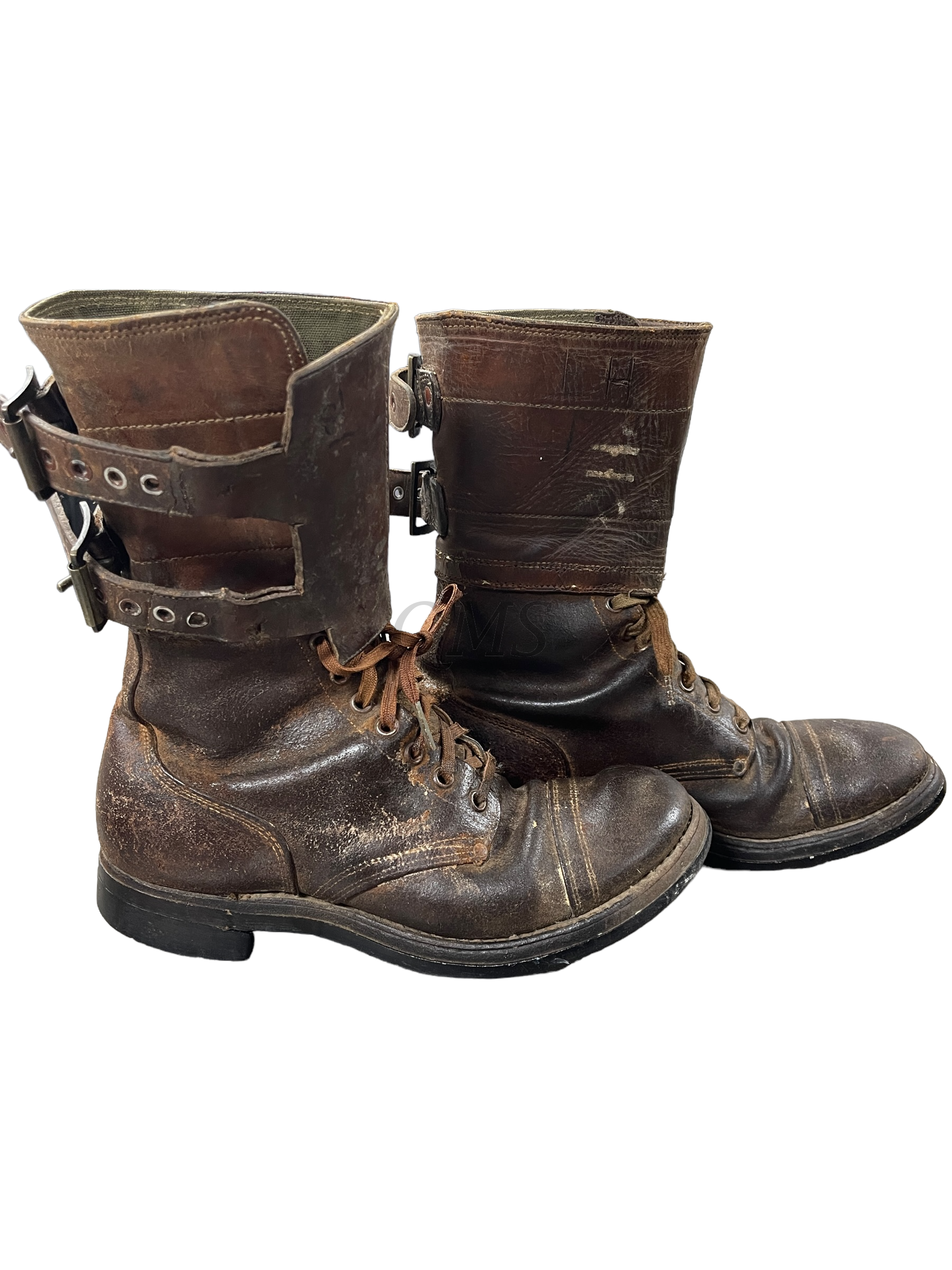 An U.S. M43 Brown Leather Buckle Boots. The boots are a size 10 1/2 The shoes are fully matching and marked as well