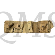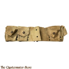 M1907 belts made made before 1917 had a retaining strap in each pocket to hold one of the two 5 round stripper clips. M1907 belts such as this example that were manufactured from 1917-1918 eliminated the straps to cut costs and simplify production. Instead they have "double pouches" with a separator in the middle