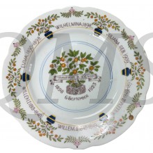 Prachtig vintage aardewerk bord ter herdenking van Koningin Wilhelmina's regeringsperiode van 1898 tot 1948. Het bord is gedecoreerd met een kroon, bloemmotieven in blauw en geel, en de tekst 'Koningin Wilhelmina 1898-1948 D'eendracht van het land'. Een uniek verzamelstuk voor liefhebbers van koninklijke memorabilia en Delfts blauw-achtige decoratie..